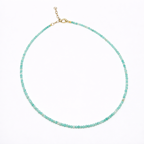 Κολιέ με ψιλές ημιπολύτιμες χάντρες από αμαζονίτη με μήκος 42+3cm ασημένιο Ag925° κούμπωμα. Πάχος ημιπολύτιμης: ~2.0mm.