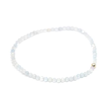 Βραχιολάκι με ψιλές ημιπολύτιμες χάντρες από Aqua Marine και ασημένια Ag925° μπίλια, περασμένα σε ελαστική σιλικόνη. Πάχος ημιπολύτιμης: ~2.5mm.
