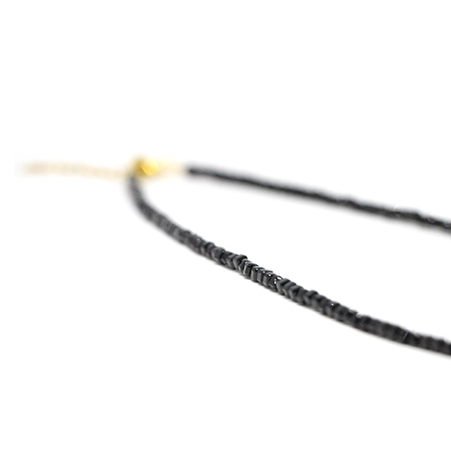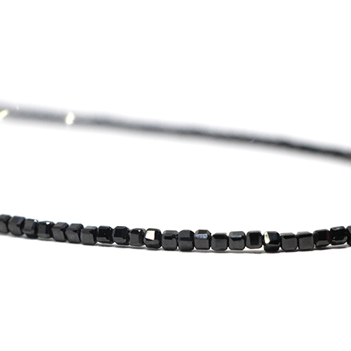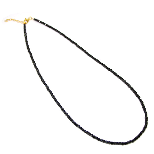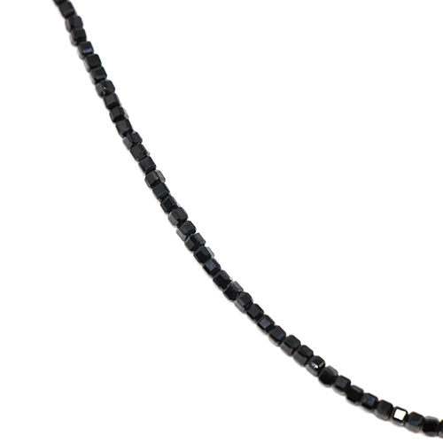 Κολιέ με ψιλές πολύτιμες χάντρες από Black Spinel κομμένες σε κυβάκι ~2.5mm. Το κολιέ έχει μήκος 40+3cm με ασημένιο Ag925° κούμπωμα. .