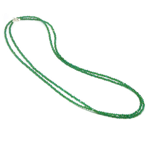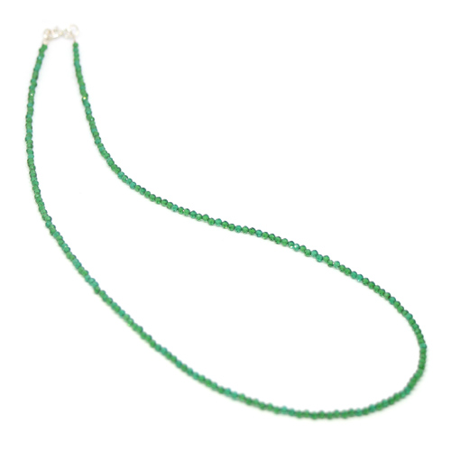 Κολιέ με ψιλές ημιπολύτιμες χάντρες από Πράσινο Όνυχα σε διάφορα μήκη 40/42/45 και 90 εκατοστά με ασημένιο Ag925° κούμπωμα. Πάχος ημιπολύτιμής: ~2.0mm.