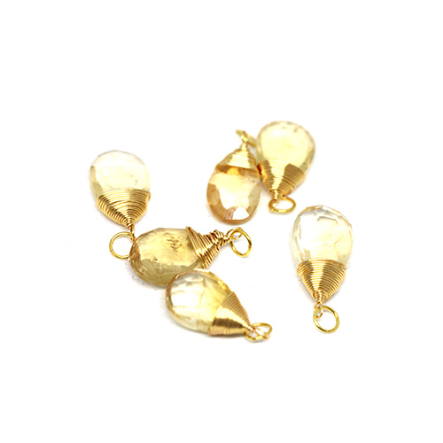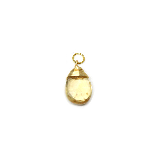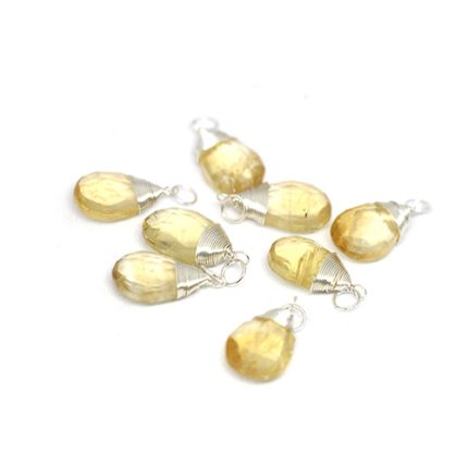 Πολύτιμη πετρούλα κιτρίνη σε σχήμα δάκρυ με πλάτος πέτρας ~10mm τυλιγμένη με σύρμα καλής ποιότητας και κρεμασμένο σε κρικάκι Ag925°.