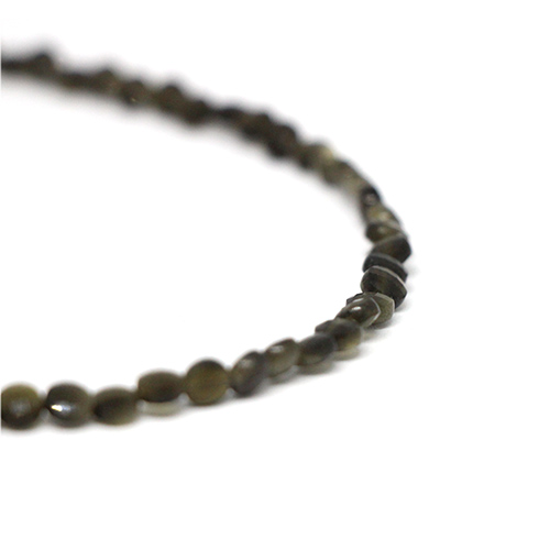 Κολιέ με μήκος 40+3cm ή 42+3cm, ασημένιο Ag925° κούμπωμα, με πολύτιμες χάντρες Obsidian Golden σε σχήμα φακής. Διάμετρος χάντρας: ~4.0mm.