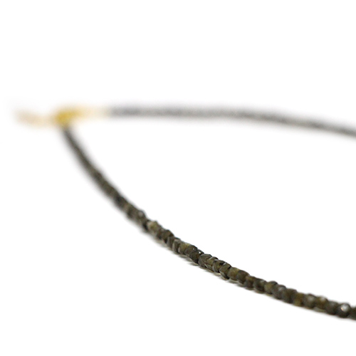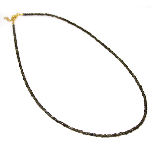 Κολιέ με ψιλές πολύτιμες χάντρες από Obsidian Gold κομμένες σε κυβάκι ~2.5mm. Το κολιέ έχει μήκος 40+3cm με ασημένιο Ag925° κούμπωμα.