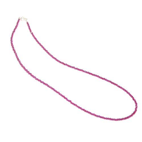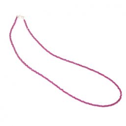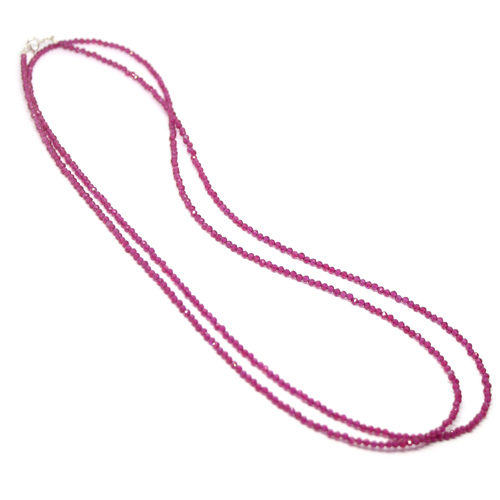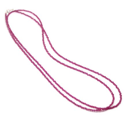 Κολιέ με ψιλές ημιπολύτιμες χάντρες από Ρουμπίνι σε διάφορα μήκη 40/42/45 και 90 εκατοστά με ασημένιο Ag925° κούμπωμα. Πάχος ημιπολύτιμης: ~2.3mm.