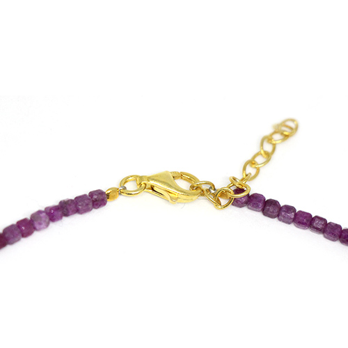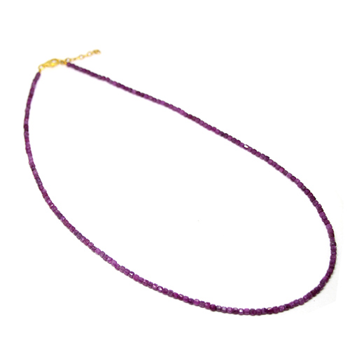 Κολιέ με ψιλές πολύτιμες χάντρες από Ruby κομμένες σε κυβάκι ~2.5mm. Το κολιέ έχει μήκος 40+3cm με ασημένιο Ag925° κούμπωμα. .