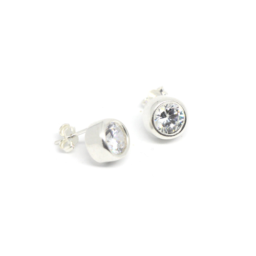 Σκουλαρίκι καρφωτό σε ασήμι 925° με ζιργκόν στρογγυλό Φ6mm.