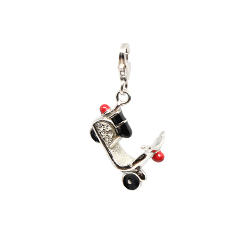 Charm “Vespa” μεγάλης λεπτομέρειας, σε ροδιωμένο ασήμι 925°με σμάλτο. Ύψος μαζί με κούμπωμα ~30mm.