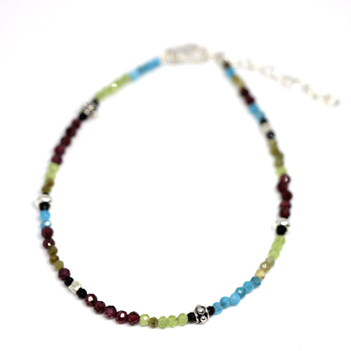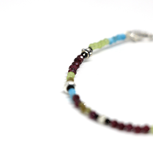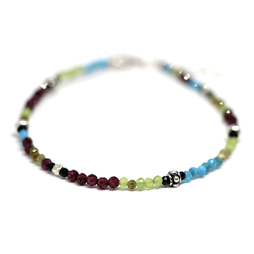 Βραχιολάκι με πολύτιμες πέτρες και ασημένια στοιχεία Ag925° περασμένα σε ατσαλόσυρμα και κούμπωμα ασημένιο με προέκταση Ag925°.